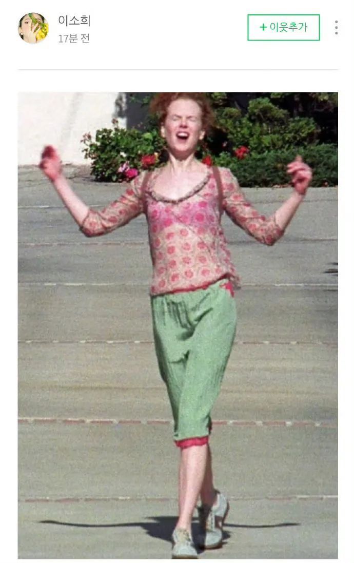 韩素希博客更新了一张妮可基德曼与前夫汤姆克鲁斯仳离后重获解放的图。