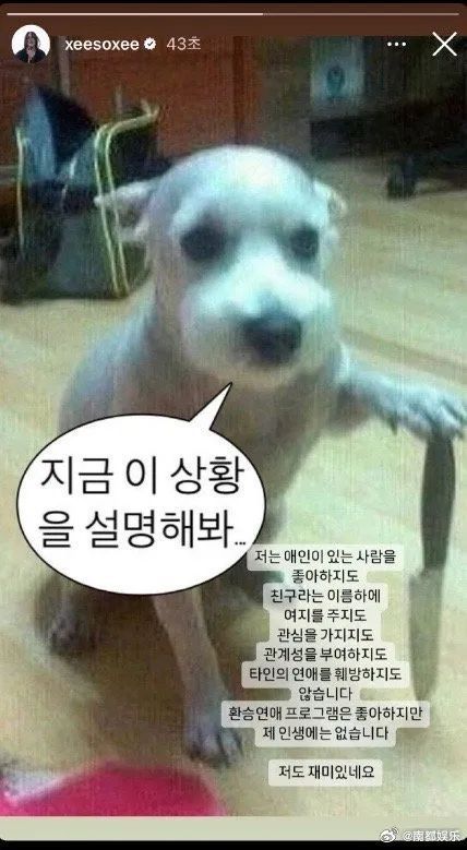 3月15日,韩素希隔空求教李惠利“真特道理”的动态,她发文:“我既不可爱有对象的东谈主,也不会对名为一又友的东谈主赐与余步,或产生热诚,或赋予关系,也不会破裂别东谈主的恋爱,诚然可爱换乘恋爱这个节目,但在我的东谈主生中并不存在,我也认为很特道理呢 。”