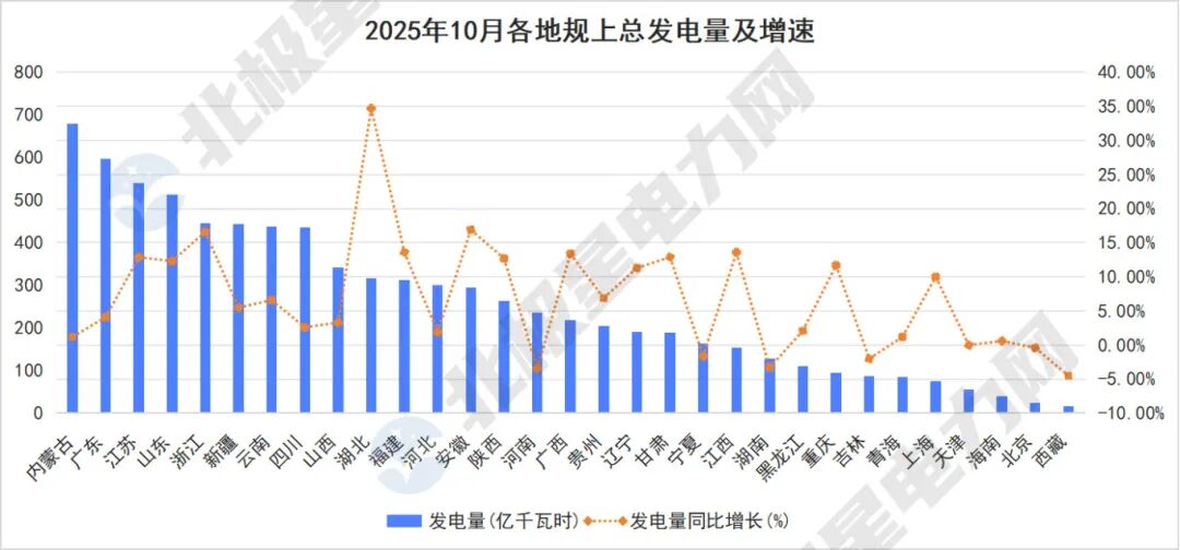 各地发电量数据取自:国度统计局公布的分省月度数据 统计范围为范围以上工业法东谈主单元,即年主买卖务收入2000万元及以上的工业企业。