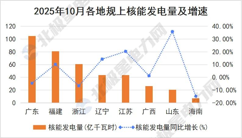 在沿海省份,核电发达着越来越进击的基荷电源作用,广东、福建、浙江三省核电发电量分离达104.9、80.7和60.7亿千瓦时。