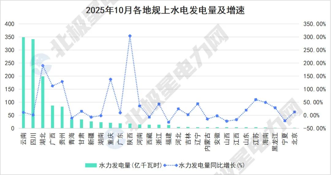 湖北省凭借199.1亿千瓦时的水电量和190.8%的惊东谈主增速,带动全省总发电量飙升34.7%,增速领跑宇宙。广西、贵州两省区水电增速分离达112.9%和129.3%,重庆、陕西也得到了138%和304.4%的高增长。